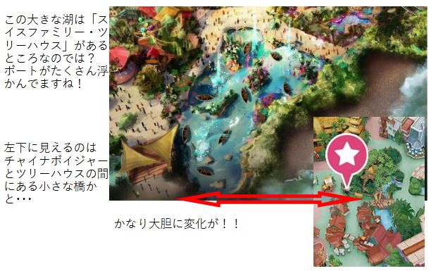 なんと言っても東京ディズニーランドのアドベンチャーランドらしきエリア刷新のイメージ図では、