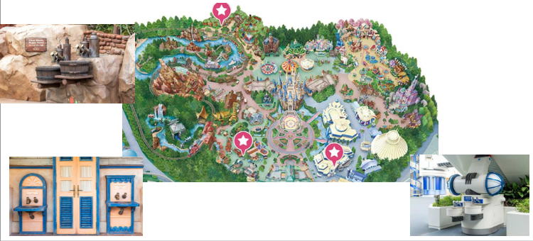 クリッターカントリー、トゥモローランド、アドベンチャーランドの3か所に設置されています。