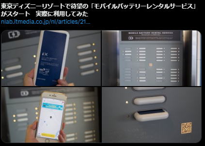 東京ディズニーリゾートで待望の「モバイルバッテリーレンタルサービス」がスタート 実際に利用してみたhttps://t.co/tnC4RYo6iR pic.twitter.com/vB8VIzWAHo