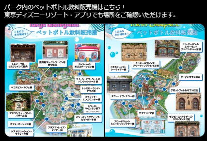 東京ディズニーランド、東京ディズニーシーに合計15箇所のペットボトル自動販売機が設置されています。(2024/7現在)