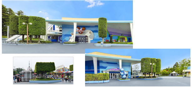 東京ディズニーランドのトゥモローランドの植栽は、トピアリー的な特徴ある形(カチッとした直線的なイメージ)に整えられているものが目立ちます。