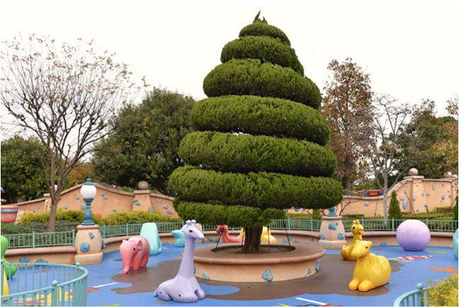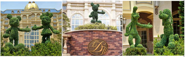ディズニーパークに入って目立つのはディズニーキャラクターなどに形が整えられた植栽の数々「トピアリー」。